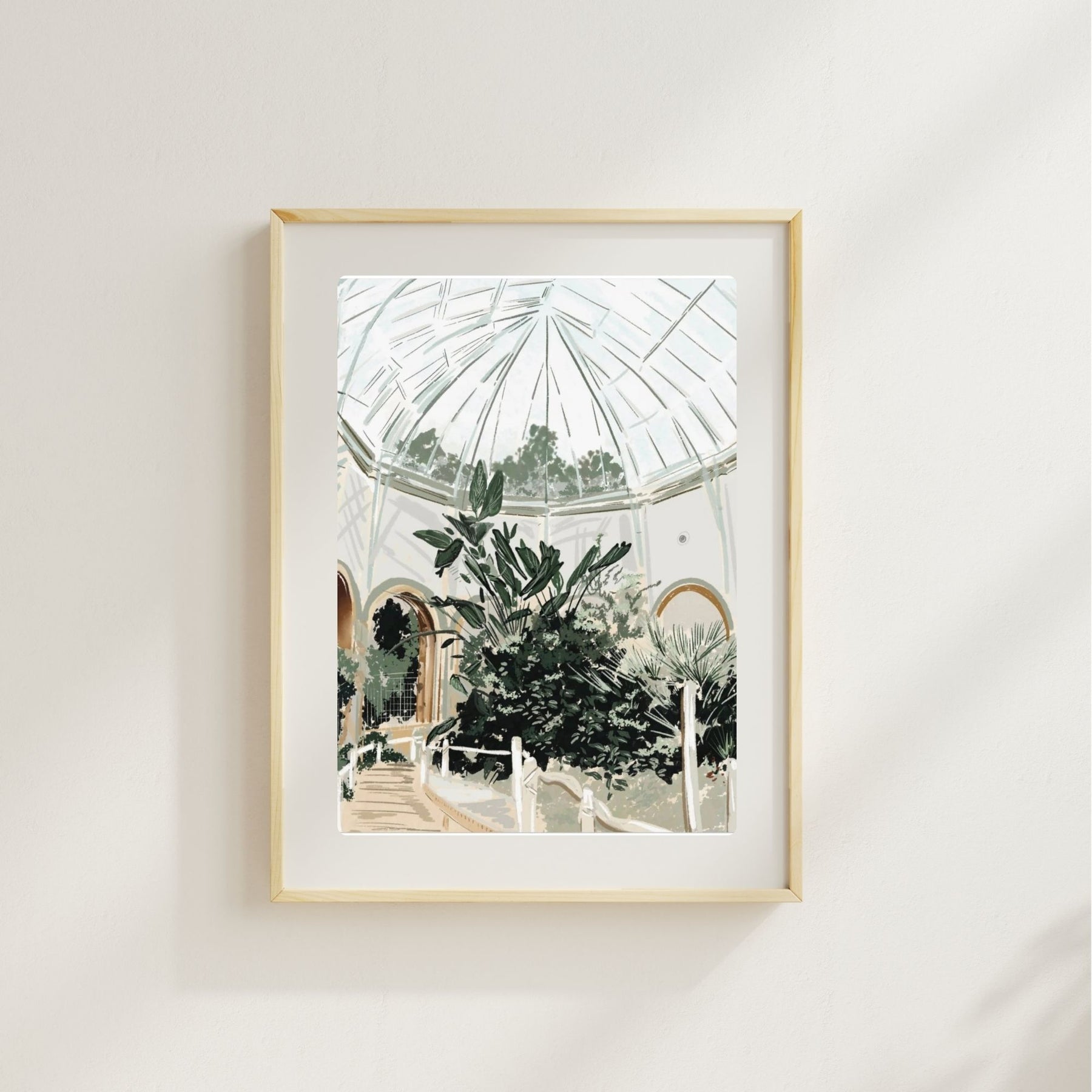 Add a tropical touch to any space with this whimsical art inspired by Zoo Berlin -  soft pastels, and lush greenery.