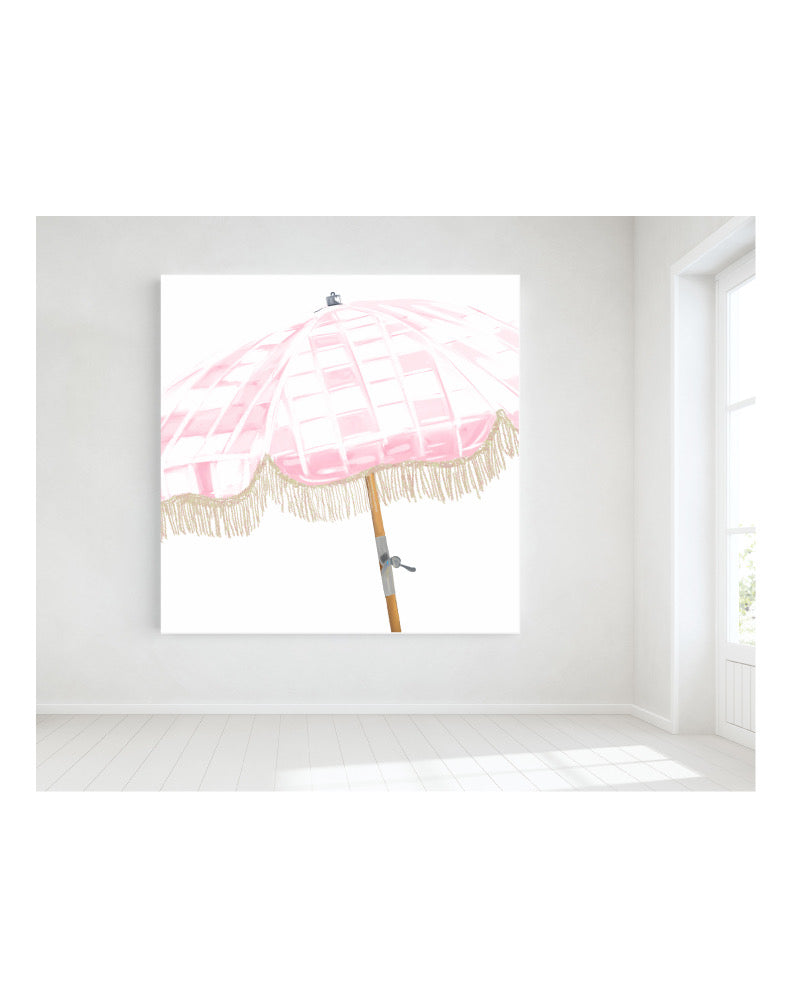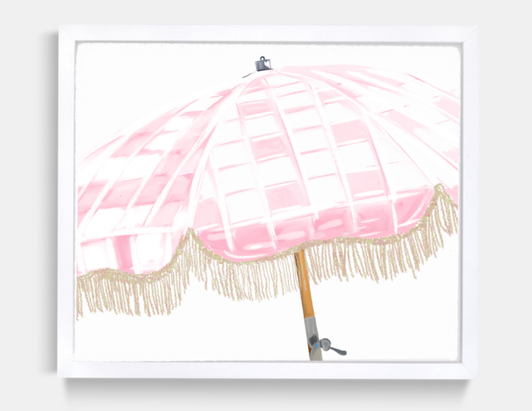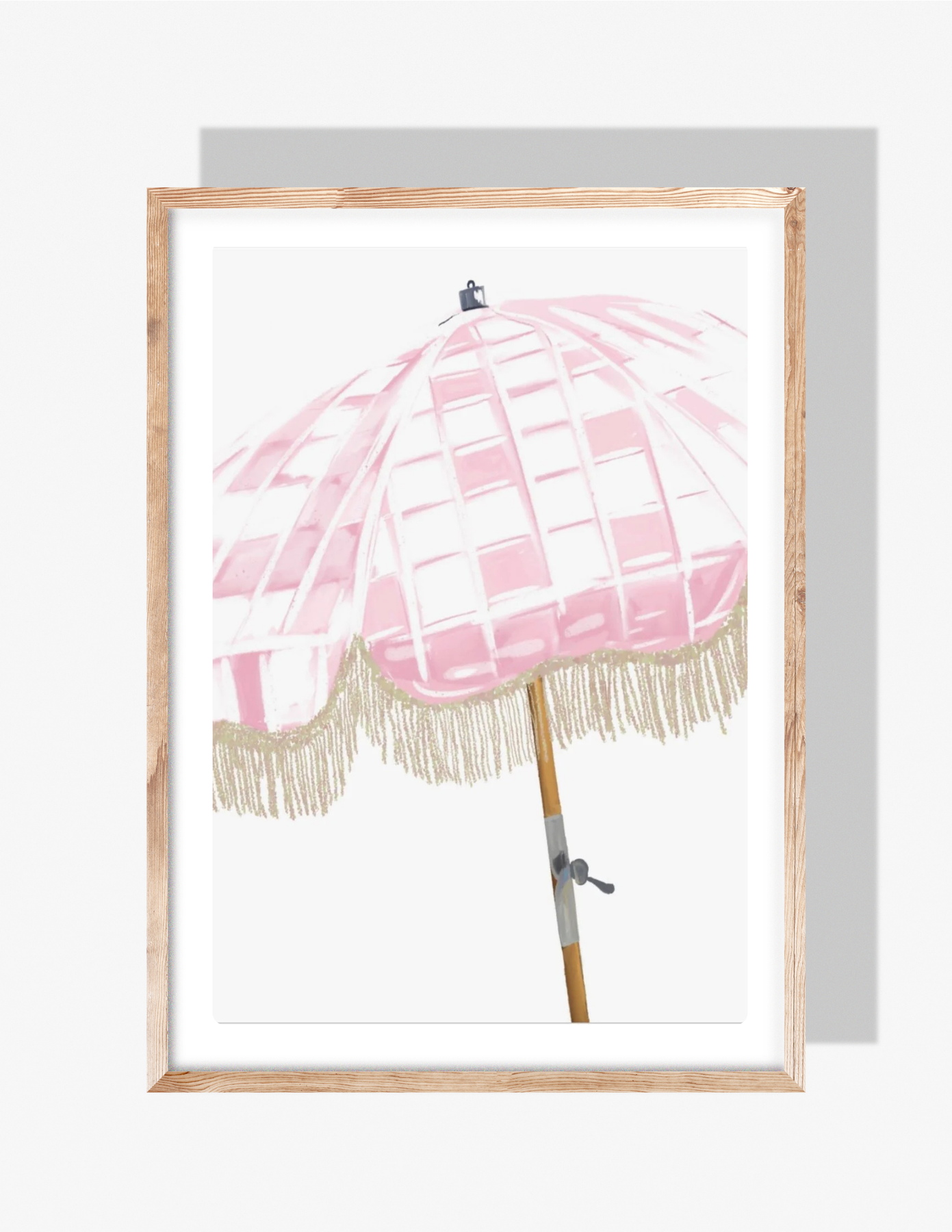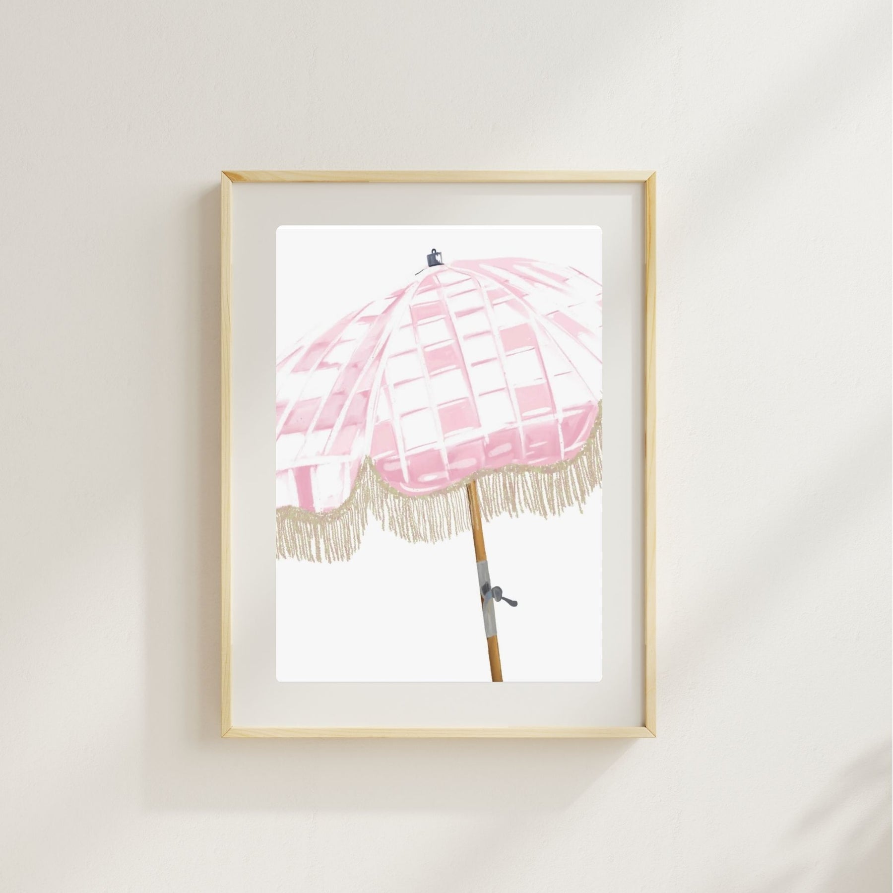 Simple yet striking, this art print features a singular pink umbrella that radiates charm and whimsy. With its playful pop of color and clean design, it’s a modern piece that captures the carefree spirit of sunny days