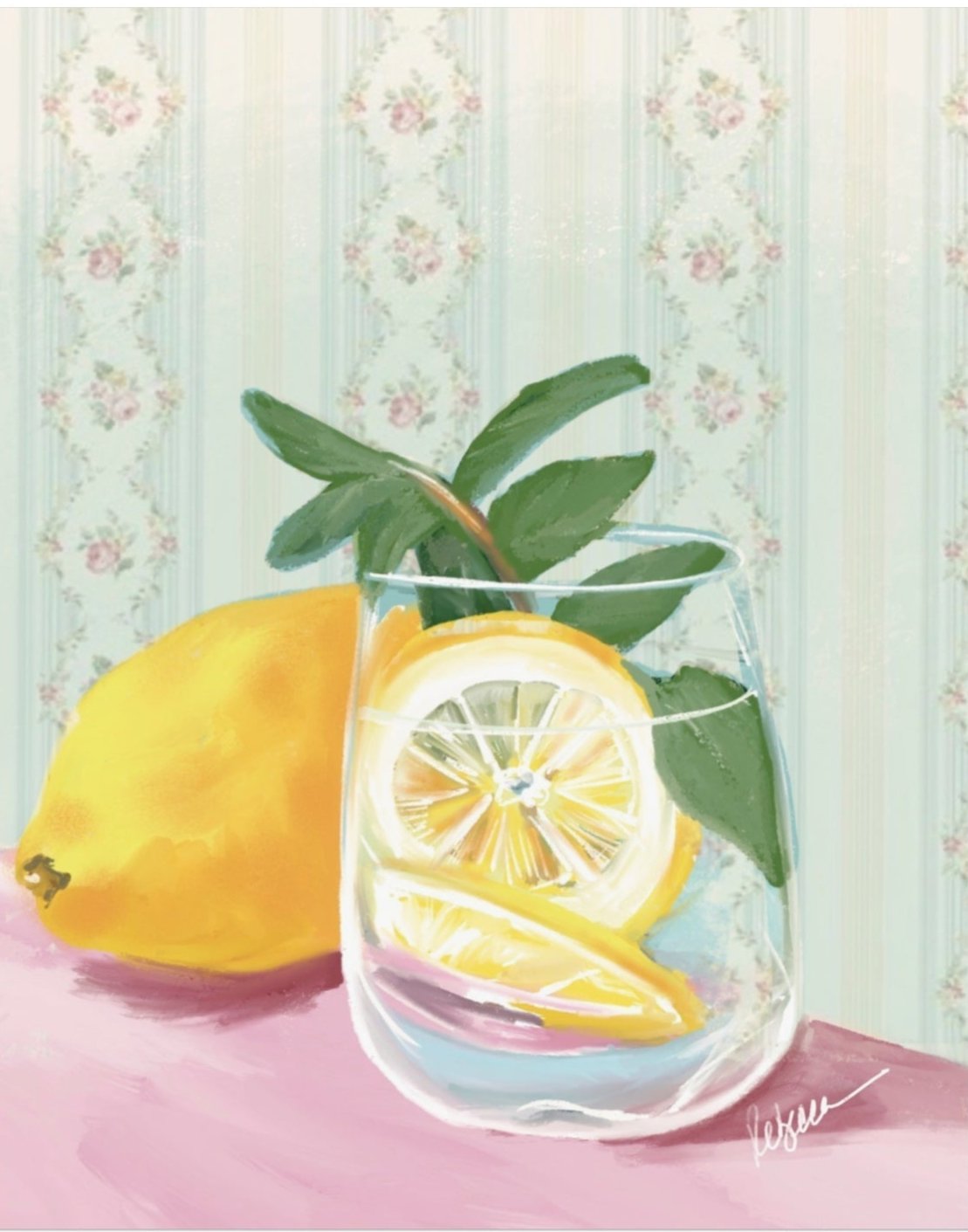 A bright and refreshing art print featuring vibrant lemons and a glass of lemonade, capturing the essence of sunny, carefree days. Bursting with cheerful color, this piece adds a touch of zest and joy to any space.
