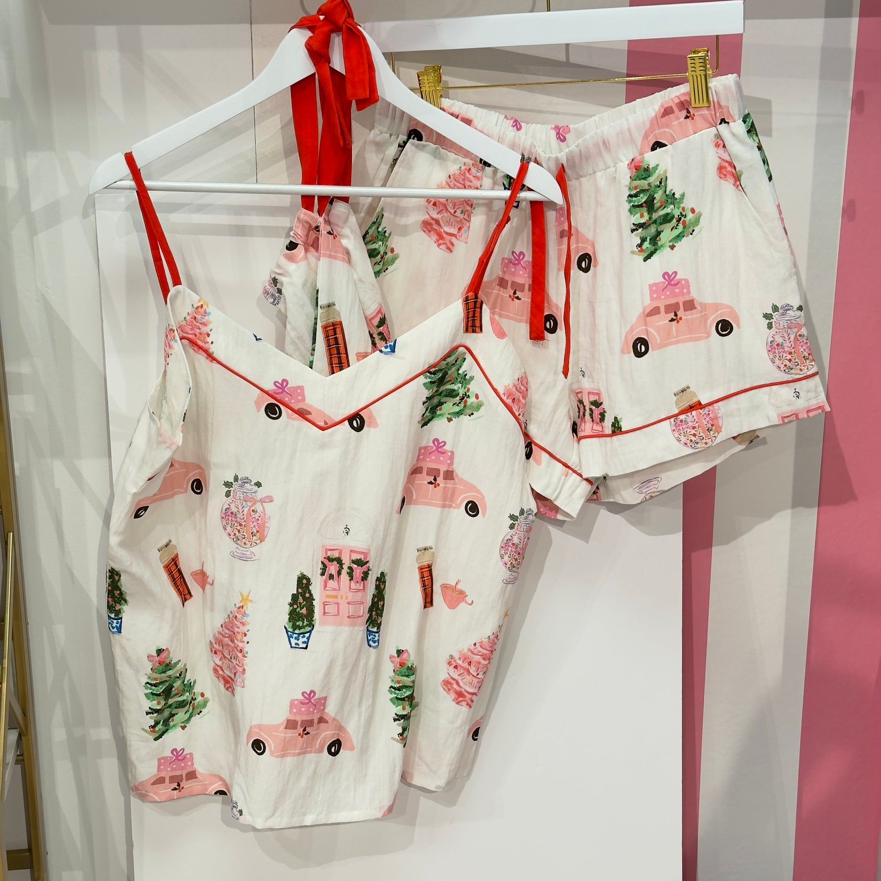 This two-piece pajama set includes a tank top and matching shorts, thoughtfully designed for relaxed evenings, cozy mornings, and all-day lounging. Featuring Rebecca Illustrated’s signature hand-painted style, this set blends wearable art with effortless comfort.