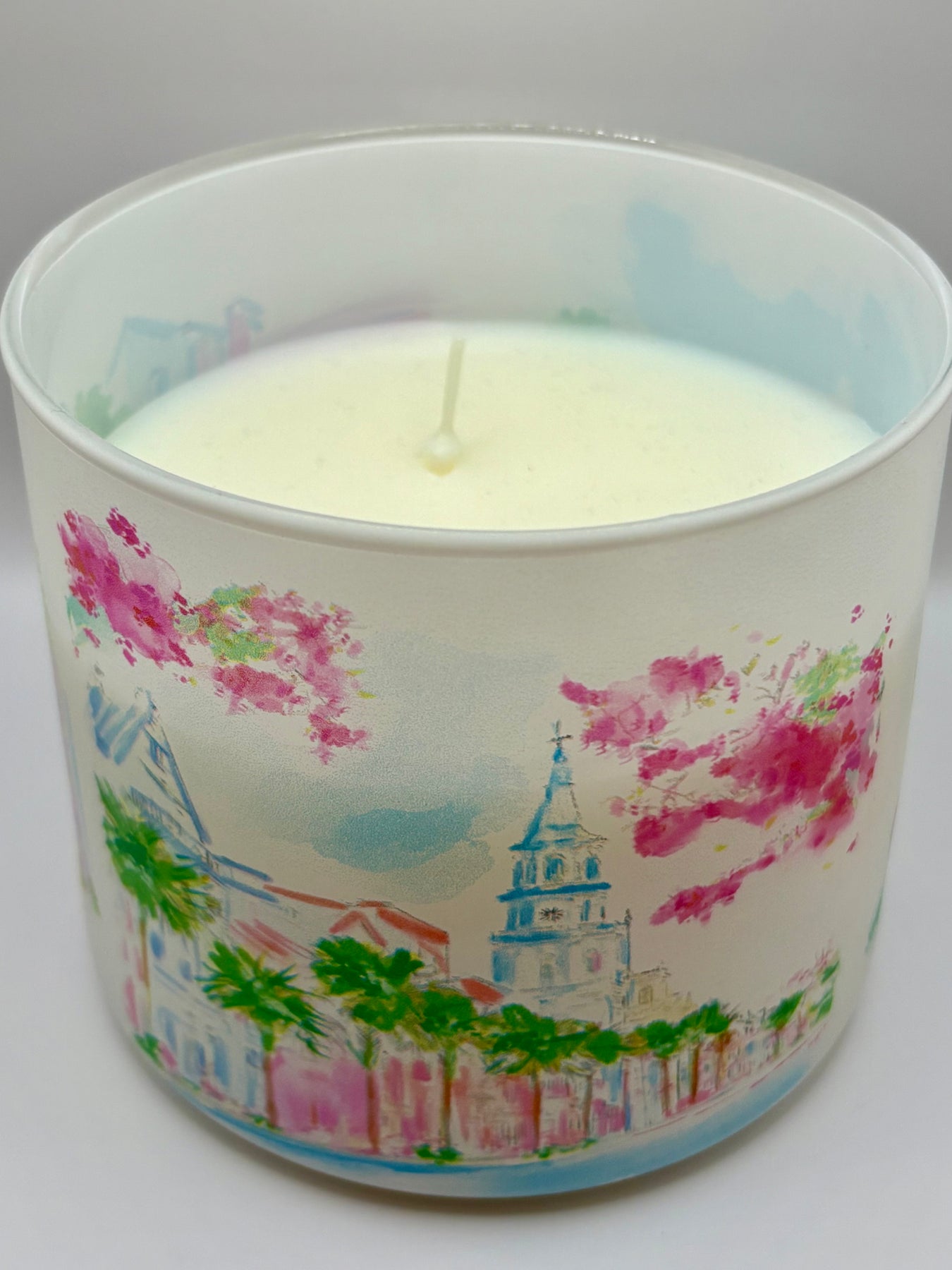 Capture the beauty and spirit of the Holy City with this candle featuring iconic Charleston landmarks — the Pineapple Fountain, Rainbow Row, and Spring Street. A perfect keepsake or gift, it celebrates the city’s timeless charm and Southern elegance while adding a touch of Lowcountry warmth to any space.