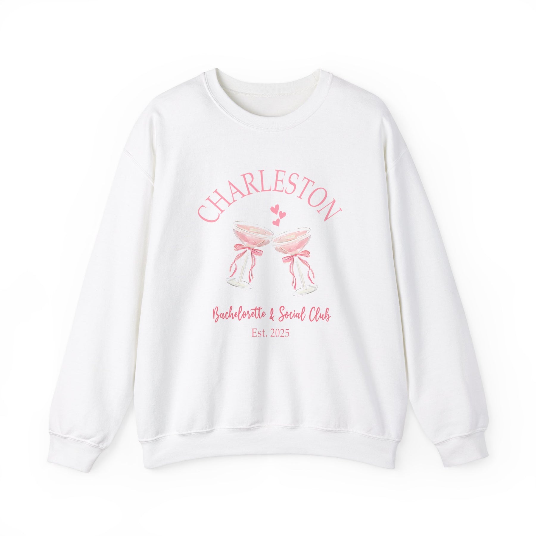 Celebrate in style! This cozy sweatshirt is perfect for your Charleston bachelorette party, featuring “Charleston Bachelorette Est. 2025” — a playful and memorable keepsake for the bride squad.