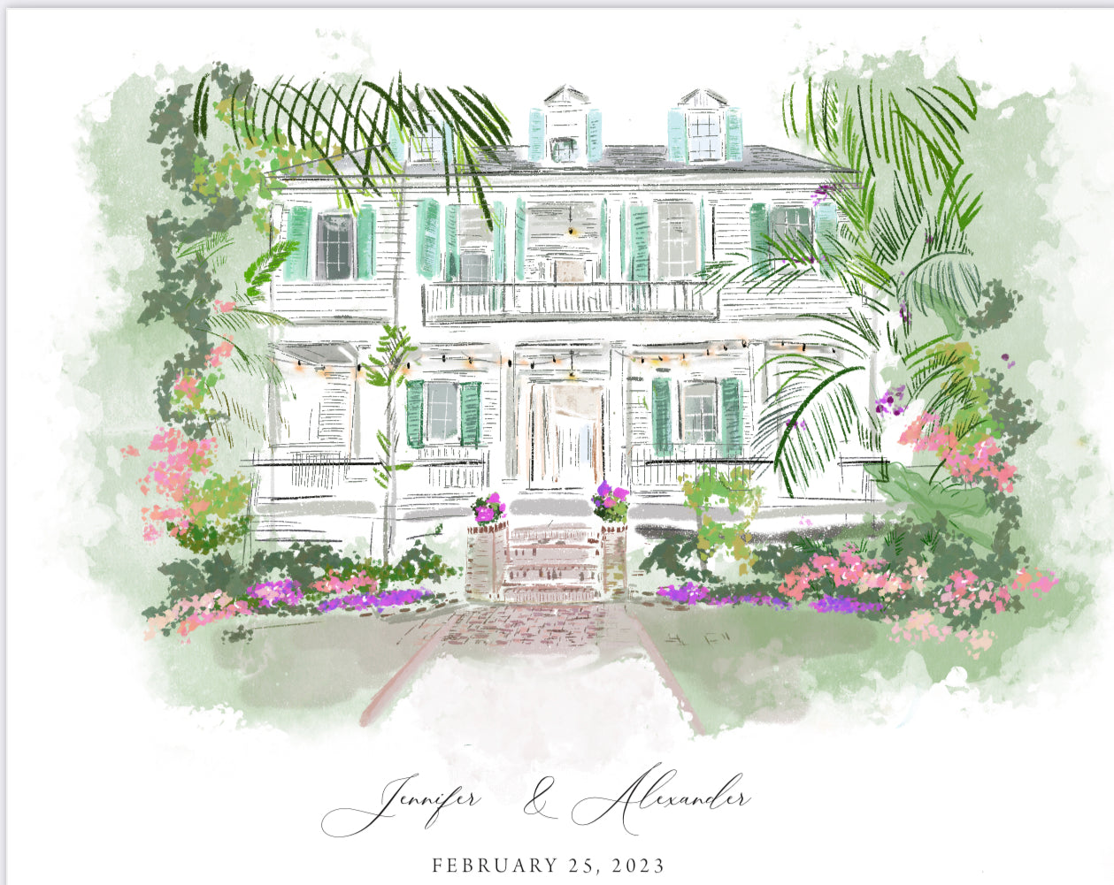 You will receive a high resolution PDF file (8x10") to print at your own convenience or Rebecca can use the artwork to design Personalized Note Cards.
