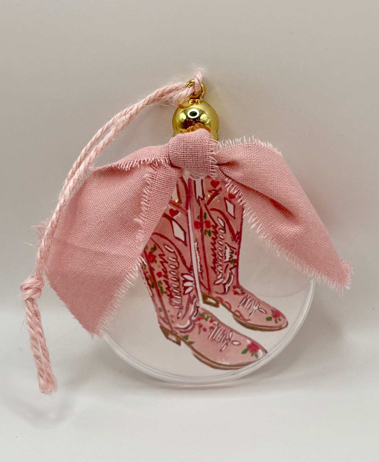 Step into fun with this playful ornament featuring a pair of bright pink cowboy boots! Perfect for adding a pop of color and a touch of western charm to any tree, it’s ideal for boot lovers, cowgirl spirits, or anyone who loves a whimsical, stylish accent.