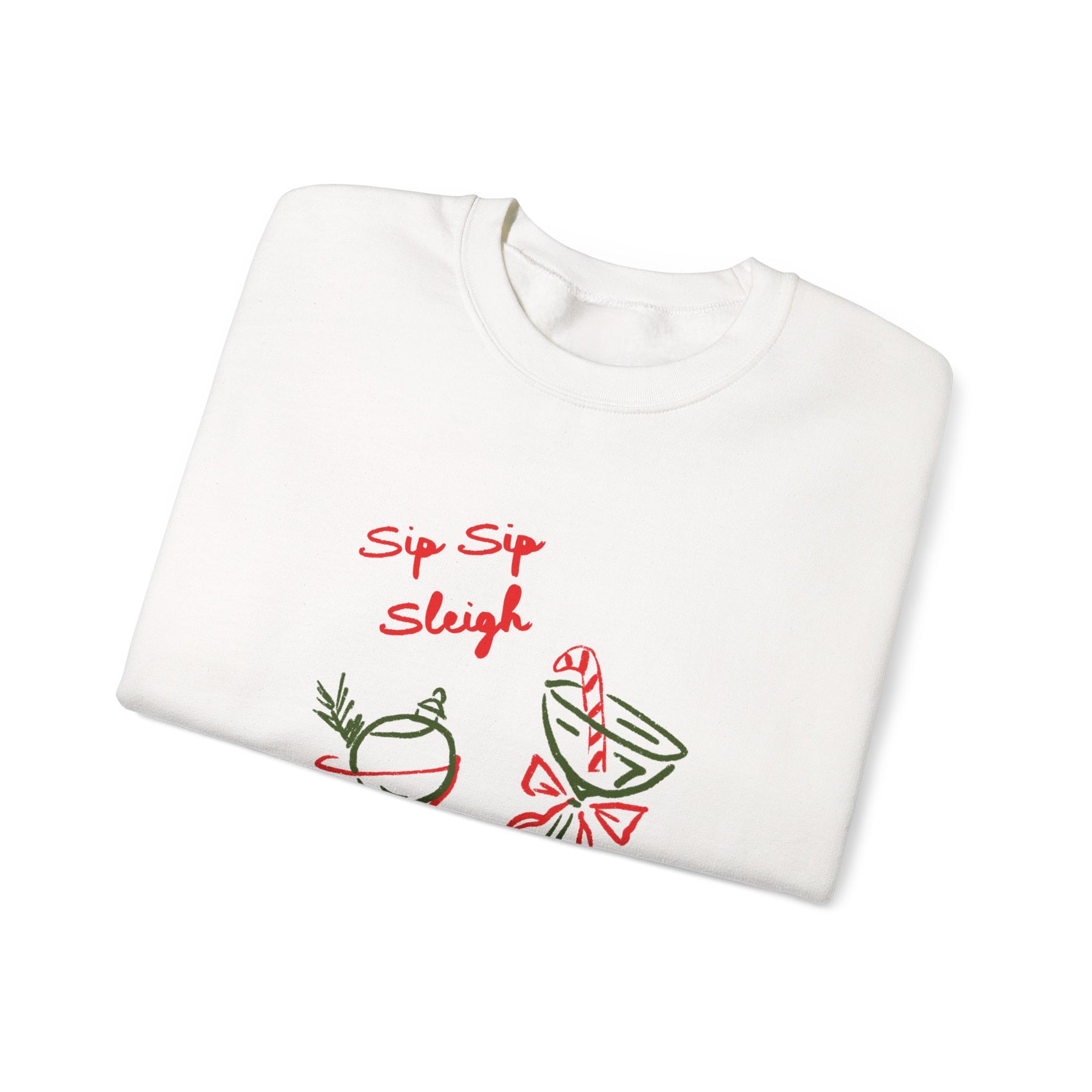 Get into the holiday spirit with our “Sip Sip Sleigh” sweatshirt — a festive favorite for cocktail lovers and Christmas enthusiasts alike! Featuring playful illustrations of holiday martinis accented with candy canes, bows, and greenery, this cozy white crewneck brings a touch of cheer (and charm) to your winter wardrobe. Perfect for holiday parties, cozy nights in, or sipping something merry with friends.